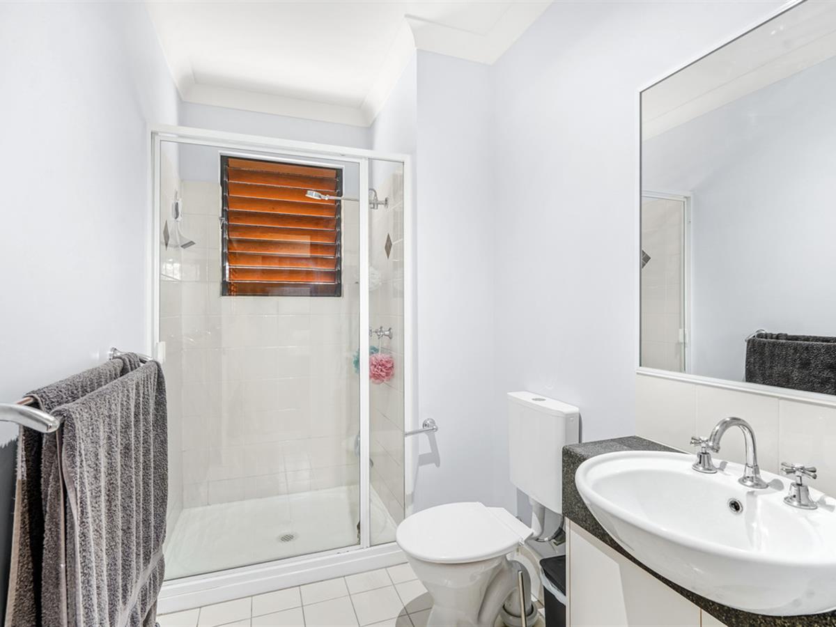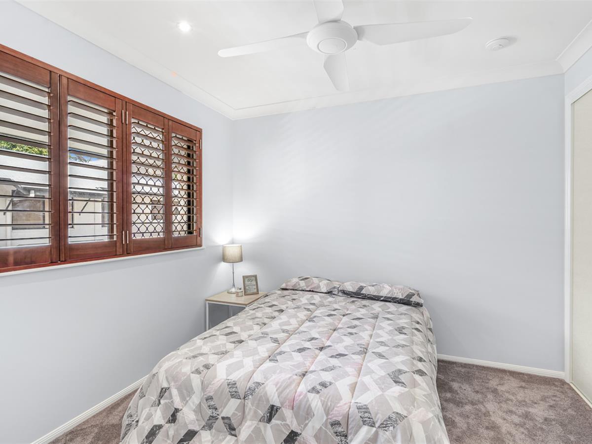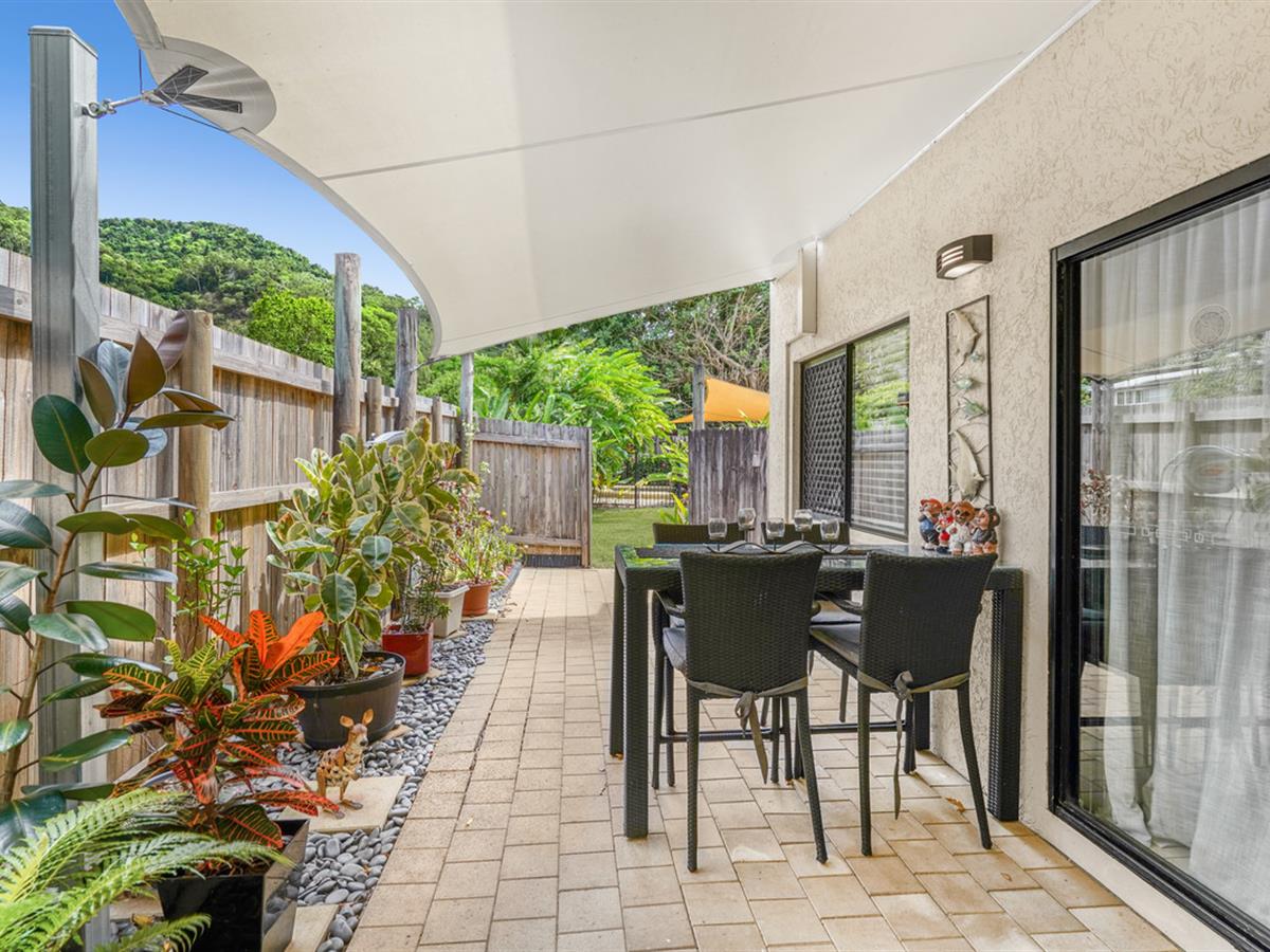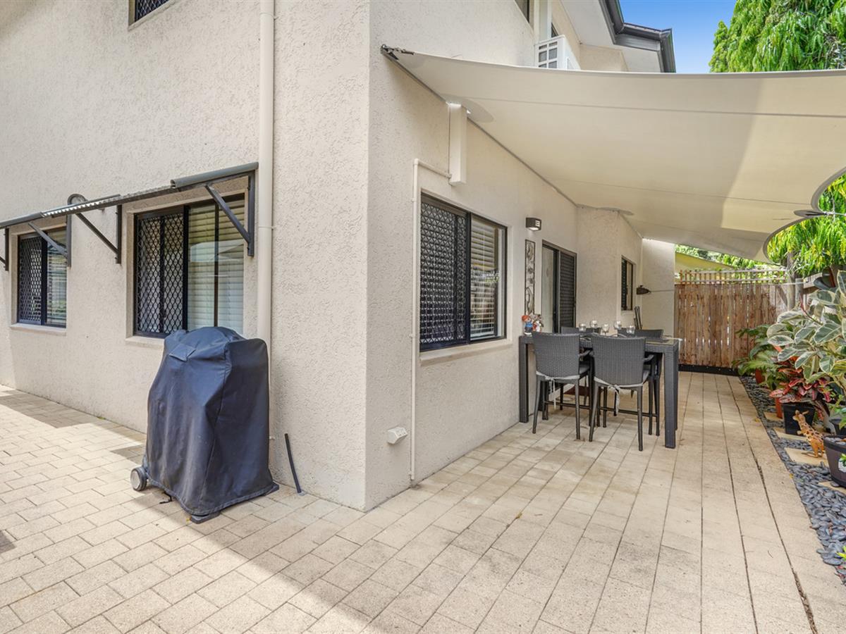 Outside, the private courtyard is fenced, screened and paved with the majority under cover. Being an end unit there is plenty of extra storage space and even a private gate towards the pool area.
