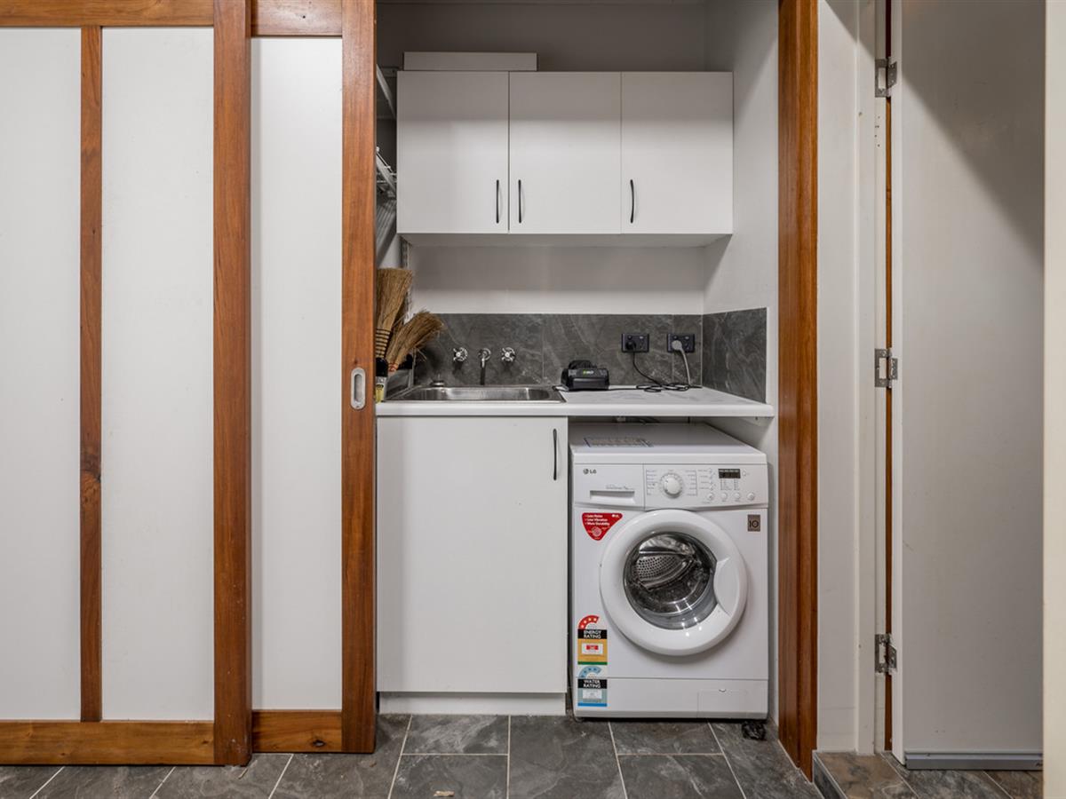 Featuring an inspired use of timber, space and stone, the main home offers central living and dining as well as a built-in study, with an excellent flow of light and breeze complemented by extensive covered patios to either side. The central kitchen provides an expanse of bench and storage space, with gas cooking, hand made custom cabinetry and a gas hot water system programmable to the individual degree.