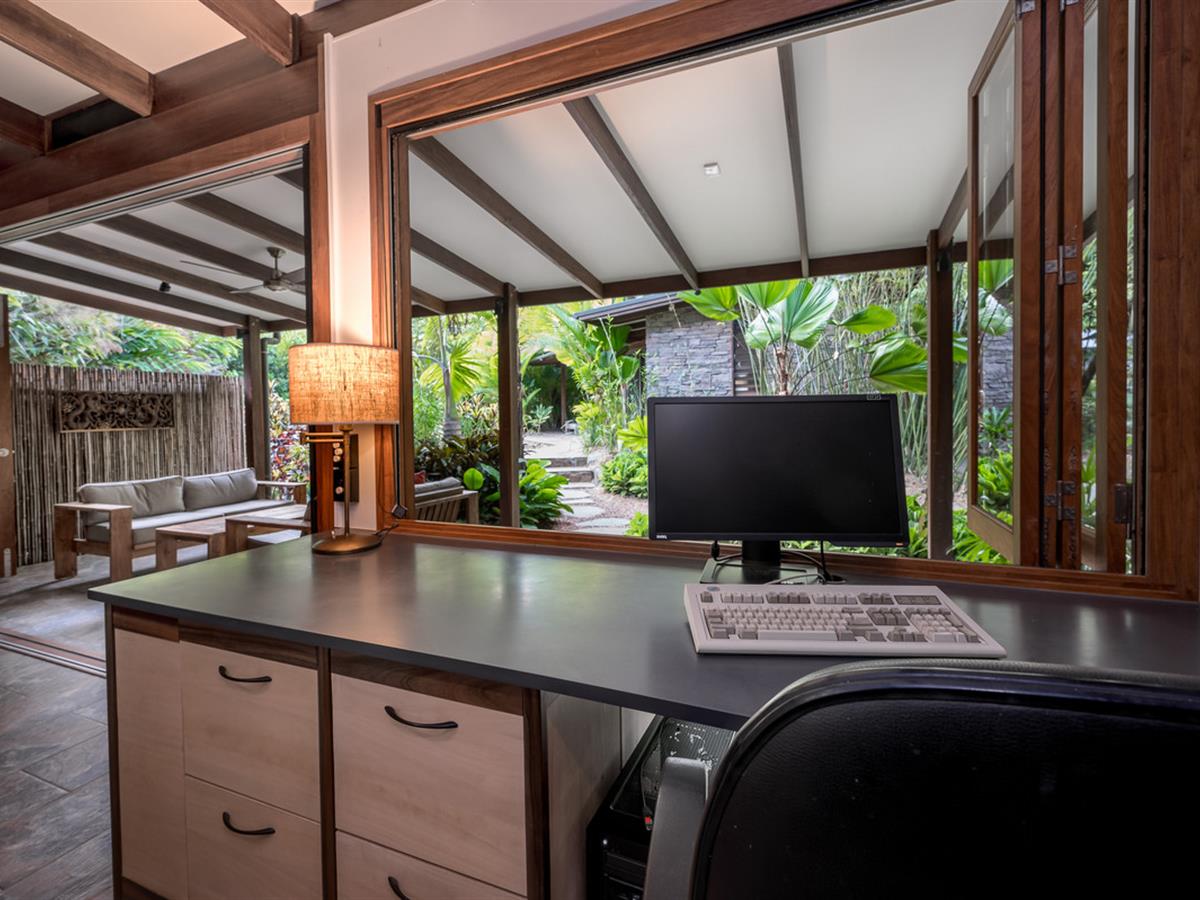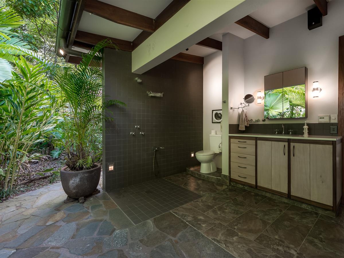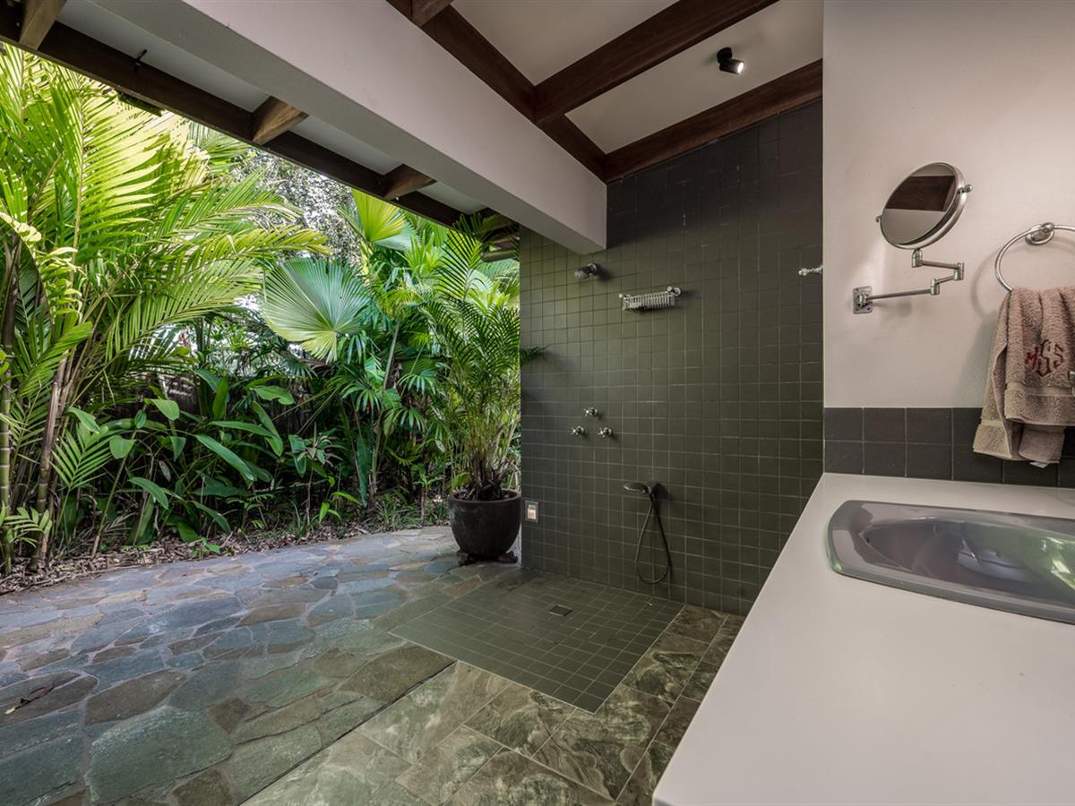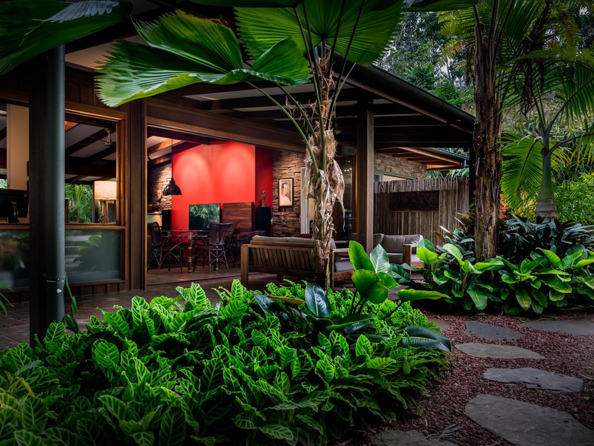 Creating a lush, tropical haven, the majority of grounds are beautifully landscaped, carefully designed to provide special spaces around each living area and make the most of the indoor/outdoor living on display throughout. Irrigation keeps everything looking its best, and the seasonal creek running through the front of the property makes rainy days ones to enjoy.