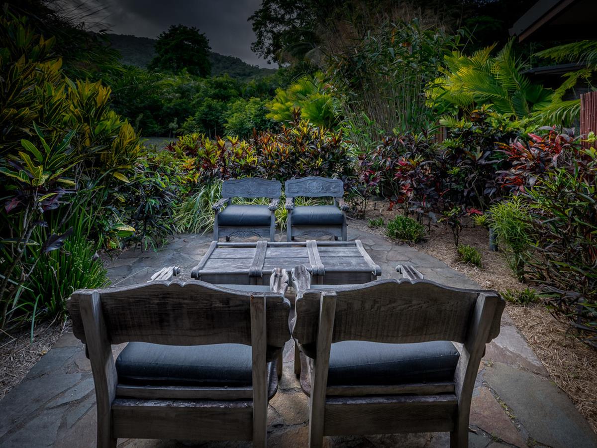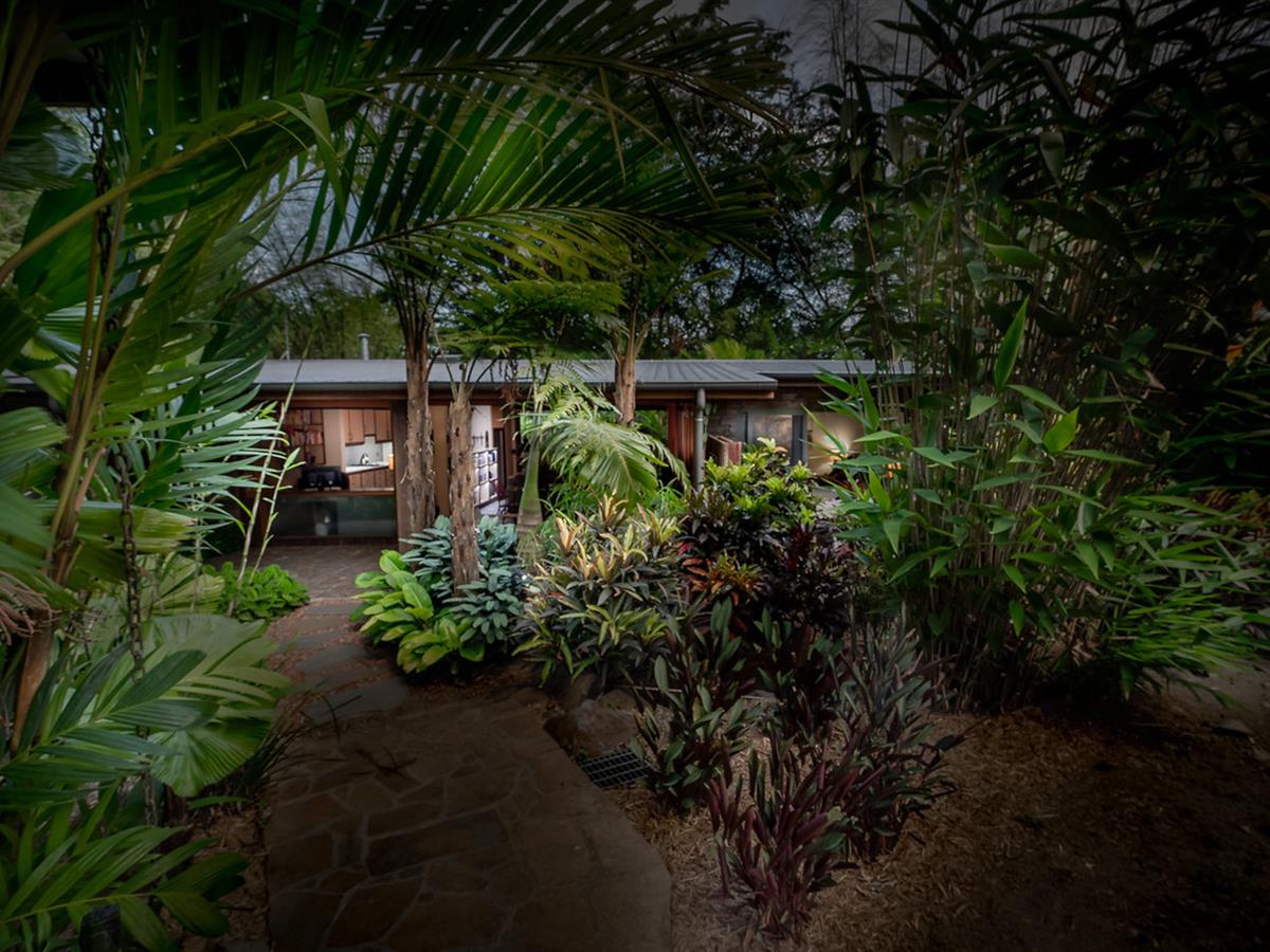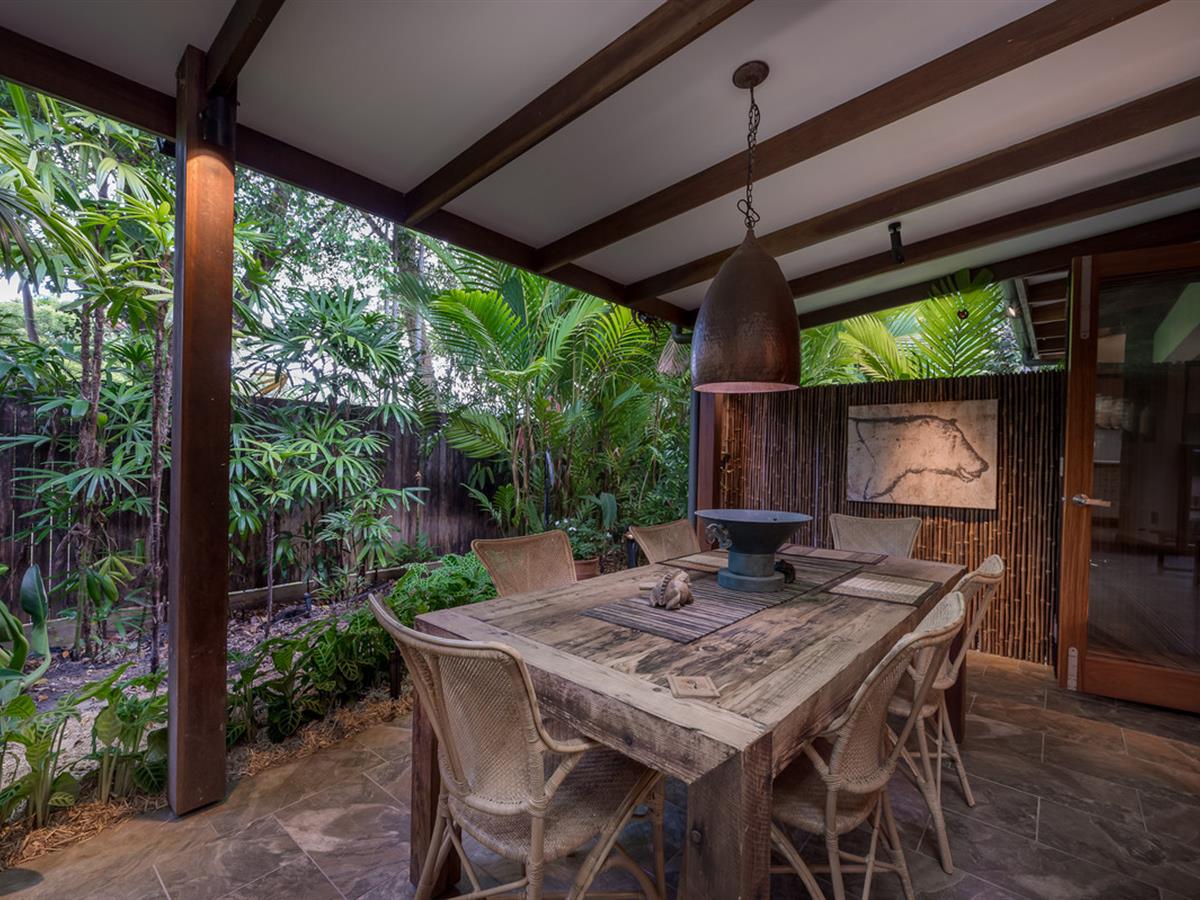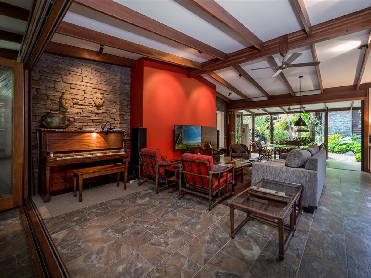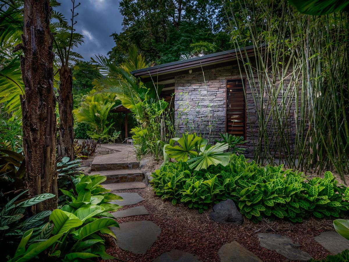 Creating a lush, tropical haven, the majority of grounds are beautifully landscaped, carefully designed to provide special spaces around each living area and make the most of the indoor/outdoor living on display throughout. Irrigation keeps everything looking its best, and the seasonal creek running through the front of the property makes rainy days ones to enjoy.