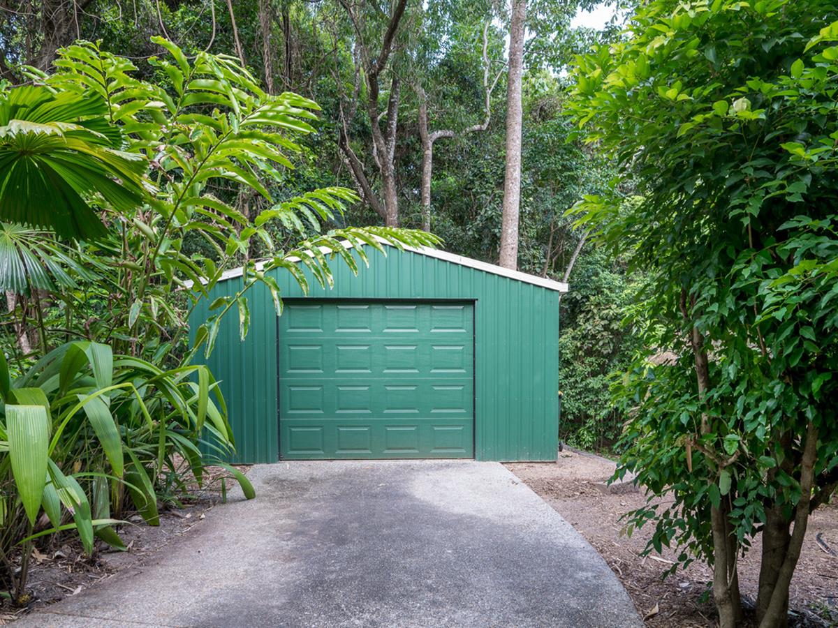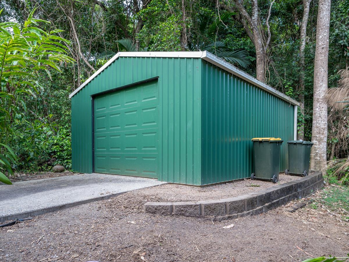 The adjacent guest pavilion offers a natural flow, with open plan bedroom and study area, covered patio and its own ensuite, again surrounded by nature. Complementing the living spaces, there is a single attached garage and a separate detached shed/workshop space for all the odds and ends.