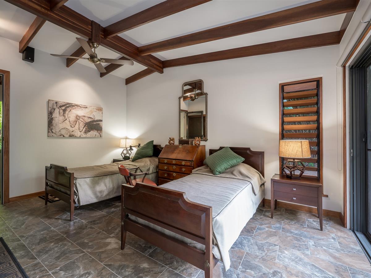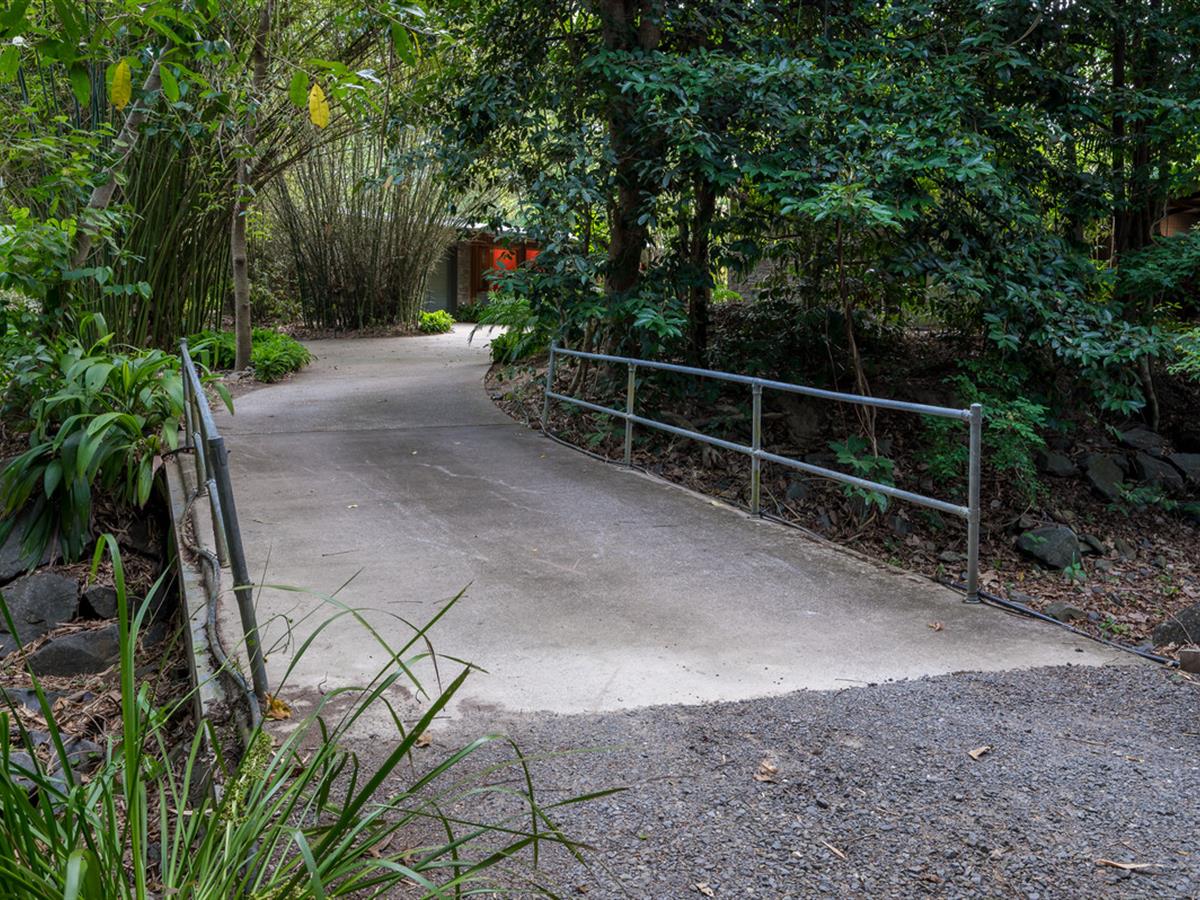 Positioned at the end of a private driveway and across your own concrete bridge over a seasonal creek, this one of a kind home is spread across 2 pavilions in a south east asian style, with a main residence and separate guest quarters.