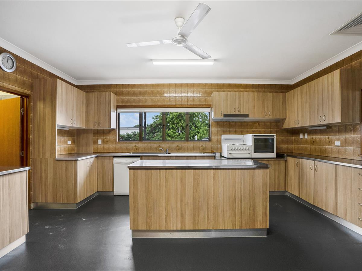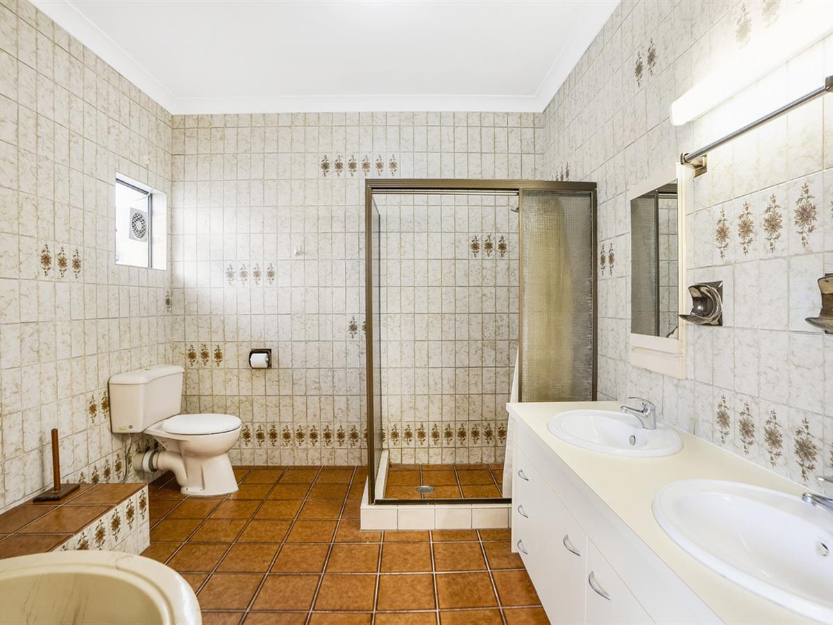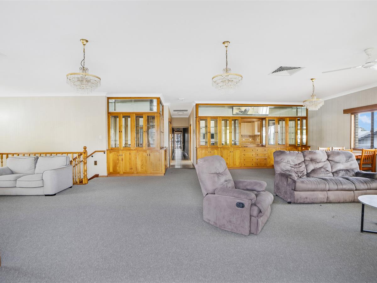 Upstairs the home presents as what would have been (in its day) a luxury residence, with 4 bedrooms, 2 with walk-ins and 2 with built-ins, 3 bathrooms (2 ensuites), a commercial sized kitchen complete with servery and walk-in coldrooms (currently decommissioned), large laundry with partially covered rear deck, and an open plan living and dining area larger than some entire apartments.