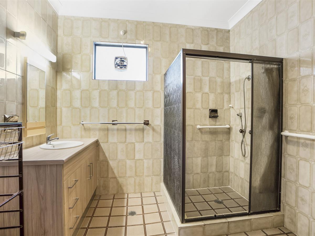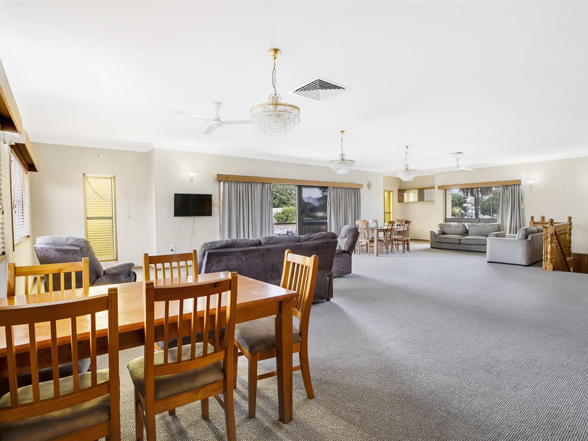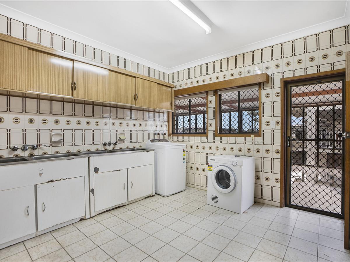Upstairs the home presents as what would have been (in its day) a luxury residence, with 4 bedrooms, 2 with walk-ins and 2 with built-ins, 3 bathrooms (2 ensuites), a commercial sized kitchen complete with servery and walk-in coldrooms (currently decommissioned), large laundry with partially covered rear deck, and an open plan living and dining area larger than some entire apartments.