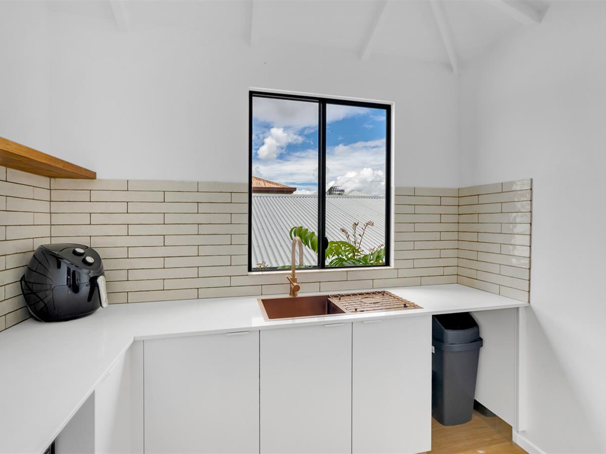Downstairs is enclosed for storage, with an open laundry area, storeroom and workshop space as well as easy parking for 1 car and plenty of space for toys.